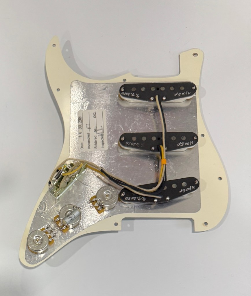 The “SP” initials on a hand-wound Fender pickup likely refer to Scott Peterson, a former Fender Custom Shop pickup winder. He was known for winding pickups for Fender’s Custom Shop, particularly the ’64 and ’69 Custom Shop sets, and the “Loaded” Nocaster pickups. These pickups are often sought after for their vintage-accurate sound and craftsmanship.
